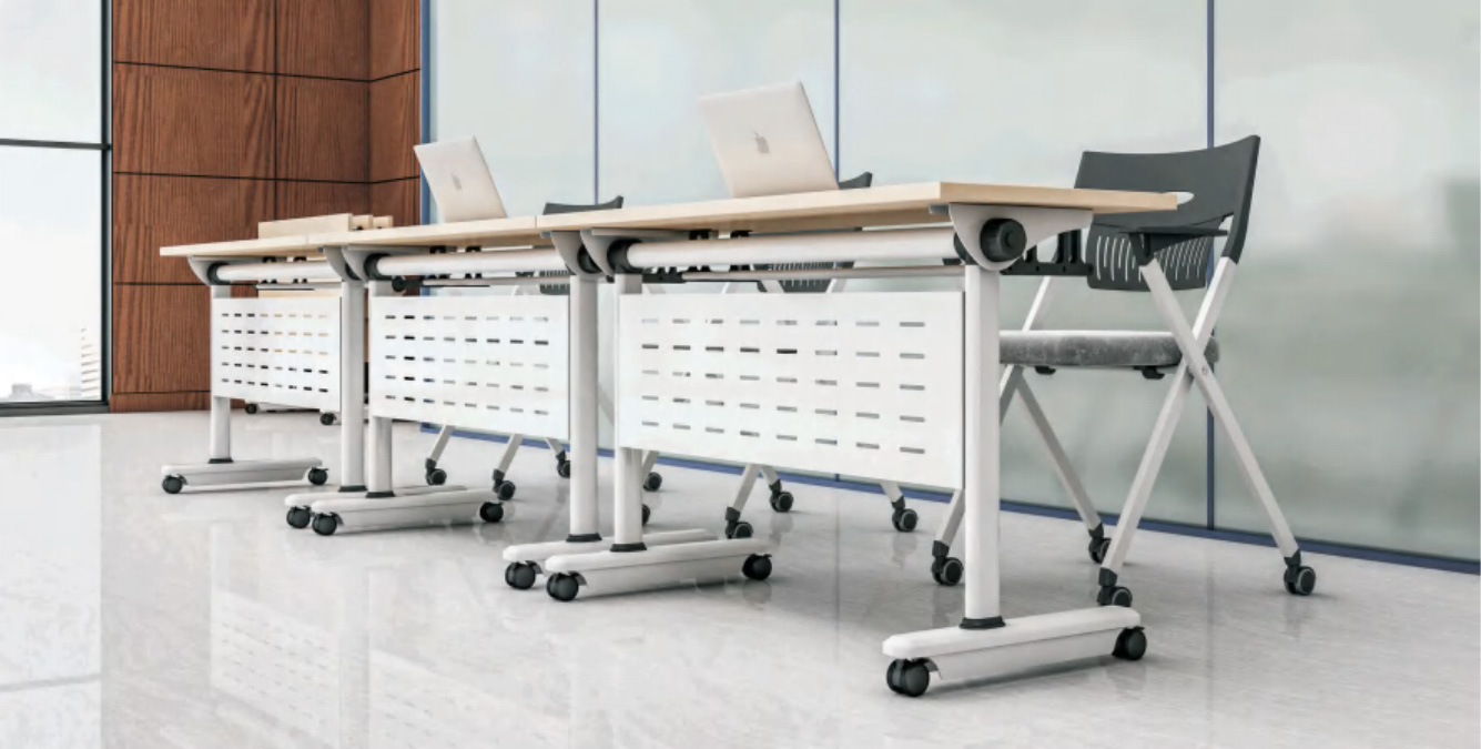 Optimize your training sessions with our Modern Office Training Room Tables. These tables are thoughtfully designed to support collaborative learning and professional growth in corporate environments. Combining style, functionality, and durability, they are a perfect addition to any office training space.
